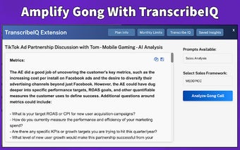 TranscribeIQ - AI Sales Insights for Gong는 판매, 고객 성공 및 제품 팀을 첨단 AI 기술로 변화시키는 혁신적인 Chrome 확장 프로그램입니다. Gong과 완벽하게 통합되어 이 도구는 통화 전사에서 실질적인 인텔리전스를 제공하여 팀 성과를 향상시키고 거래를 신속히 체결하며 제품 혁신을 이끌어냅니다.